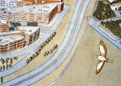 ![]() Calle Leganés | ![]() Calle Leganés | ![]() Pintura mural en las medianerías frente a Base Aérea. Madrid |